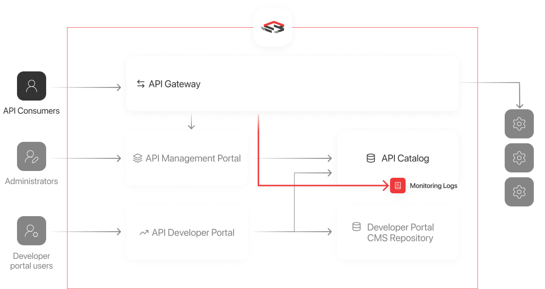 API Gateway delivers requested monitoring data asynchronously from the Business API calls. Performance of the Business API calls is not affected.