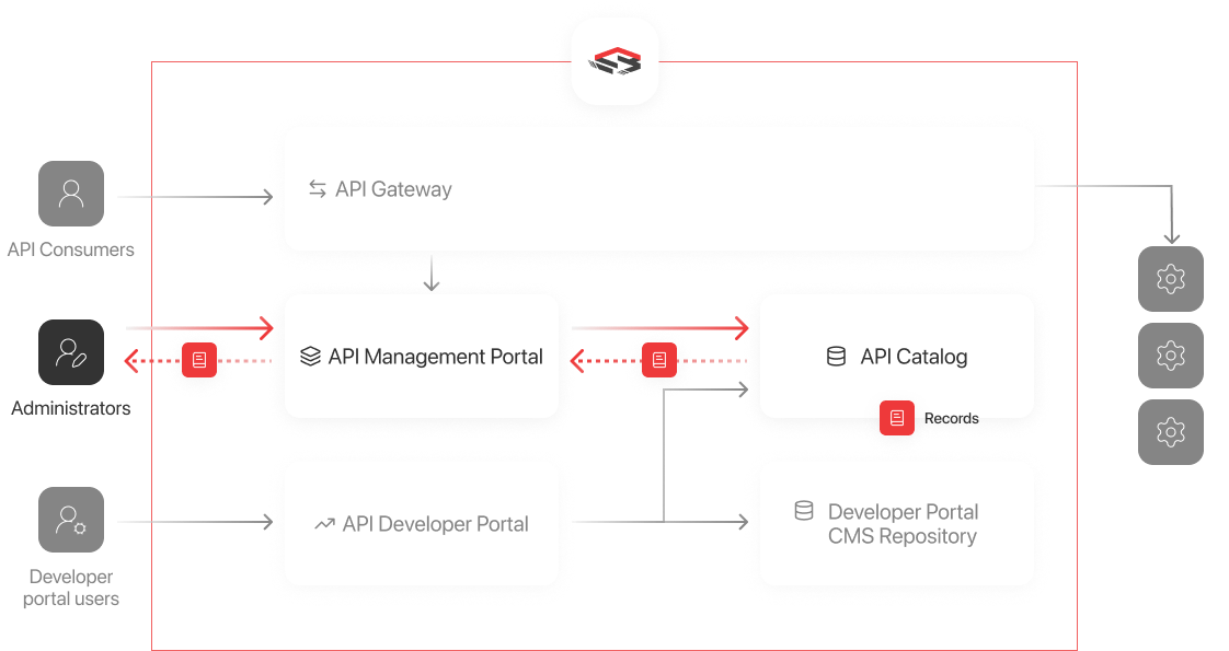 PI Gateway sends monitoring, recording, logging and tracing information to the API Catalog via Sentinet Management API